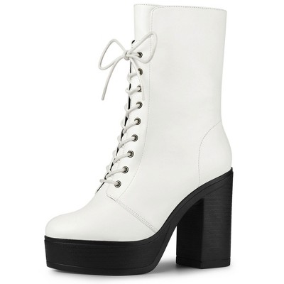 White high heel combat clearance boots